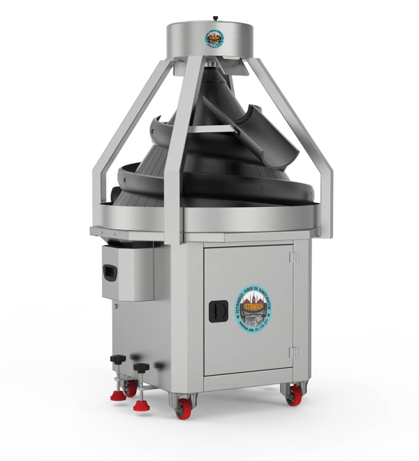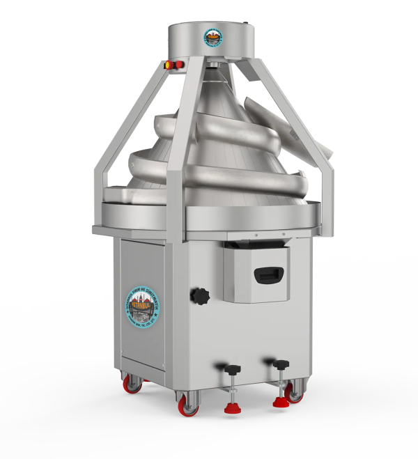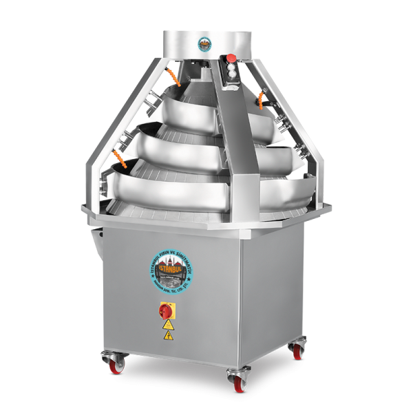 Konik yuvarlama makinası, alüminyumdan üretilen bir koni ve etrafındaki spiral şeklinde dolaşan alüminyum kollar sayesinde hamura şekil verir. Kesme-tartma makinasından gelen hamur, alüminyum giriş oluğuna düşer. Yuvarlanma tamburu ve yönlendirici oluklar sayesinde yuvarlak şekil alarak dinlendirme makinasına ulaşır. Bu arada, un eleme tertibatıyla hamurun boşaltma oluğuna yapışması önlenir. Havalandırma tertibatı sayesinde oluklara hava üflenerek hamurun tambura da yapışması önlenmiş olur. Bütün alüminyum aksam isteğe bağlı olarak teflonla kaplanabilir. Standart 50-150 gr, 100-600 gr, 200-1000 gr hamura şekil veren 2 çeşit makina üretilmektedir.